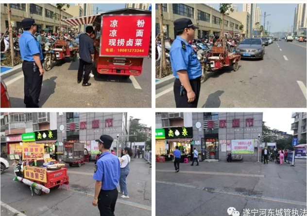 为进一步规范食品流动摊贩管理,营造整洁有序的市容环境,提升市民群众满意度,根据遂宁市城市管理行政执法局《关于印发〈2021年食品流动摊贩专项整治工作方案〉的通知》文件要求,河东新区综合行政执法局结合辖区实际特点,积极开展流动食品摊贩专项整治行动,切实加强食品流动摊贩管控力度。