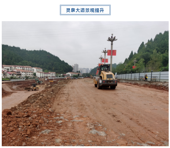 灵泉大道景观提升建设年限2021年-2023年,总投资为1.9亿元,主要建设内容包括道路拓宽工程和景观工程。道路拓宽工程对长约2.8千米道路进行扩宽;景观提升工程涉及面积30万平方米,主要建设景观绿化、铺装、给排水、景观照明、标识系统、土方等相关工程。目前,溪上驿站基础及主体完成100%;挡墙完成100%,挡墙连砂石回填完成100%;山水之门土方回填完成100%;书苑驿站主体完成45%。