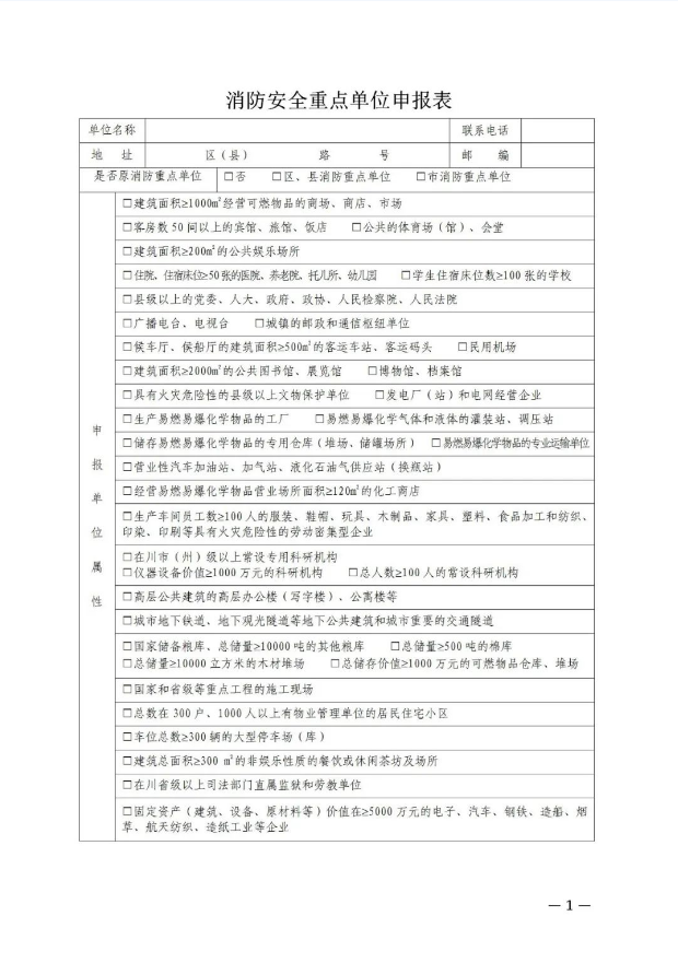 按照《中华人民共和国消防法》《四川省消防安全重点单位界定标准》等法律法规,符合以下情形的单位请于2023年3月15日前主动向属地消防救援机构申报为消防安全重点单位。