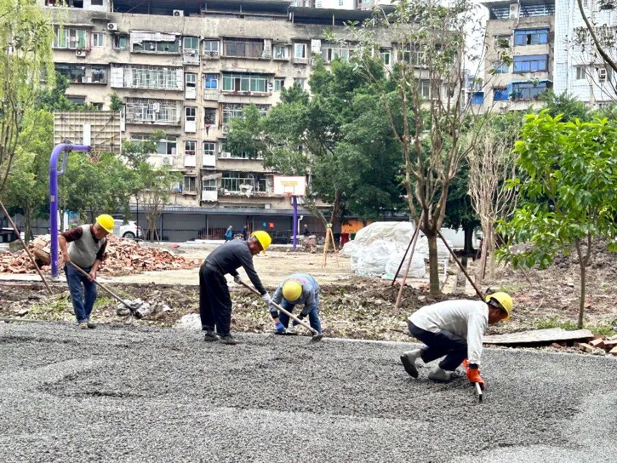 近日,记者走进船山区老旧小区改造项目(五)期锦兴小区项目现场,只见工人们正分散在各施工区域,进行透水混凝土路面铺设等作业,一派忙碌景象。
