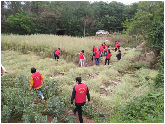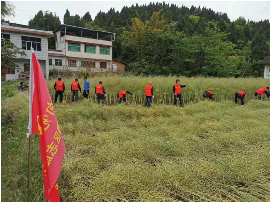 科教园组织辖区各党支部党员成立志愿服务队,本次志愿服务活动以“爱心助农解民忧”为主题,深入到太平桥和旗山两个社区的田间地头,帮助缺乏劳动力的留守老人收割油菜籽,共组织发动40名党员志愿者,帮助6家农户收割了4余亩油菜,深刻地诠释了新时代服务精神。
