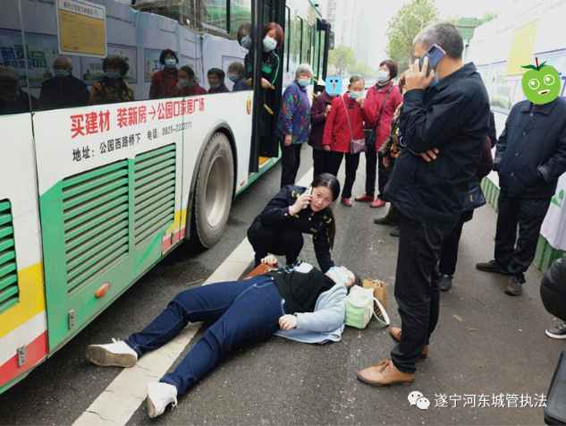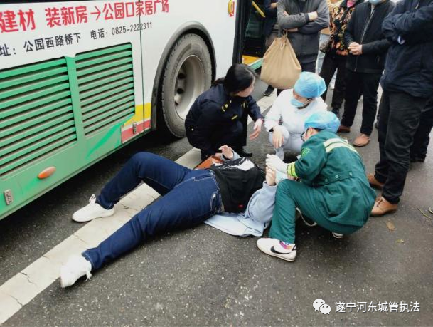 4月13日上午,河东新区综合行政执法局二大队三中队中队长梁艳在市容环境维护工作中,巡查至香林南路中石油公交站台时,发现一名女士受伤倒在公交车旁,梁艳立即上前查看伤者情况,暖心实施救助。