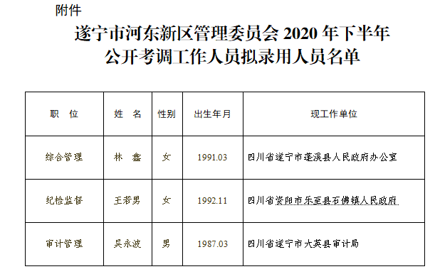 附件:遂宁市河东新区管理委员会2020年下半年公开考调工作人员拟录用人员名单