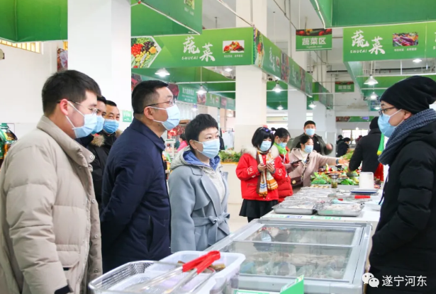 在新糖房农贸市场,刘娜详细了解了市场疫情防控措施落实情况,实地查看市场入口的体温监测、扫健康码、口罩佩戴及登记情况,详细了解了市场的日常清洁消毒和摊位消杀情况,并查看了市场所售冷冻食品的进货凭证、合格证明等。刘娜强调,要严格按照疫情防控要求做好市场日常防疫工作,督促经营摊主严之又严、细之又细落实好防疫措施;相关部门要加强市场防疫消杀和冷冻食品检测,特别是对重点区域、重点品种要进行全面监督检查,切实强化“人物并防”,全力以赴抓好冬季疫情防控。