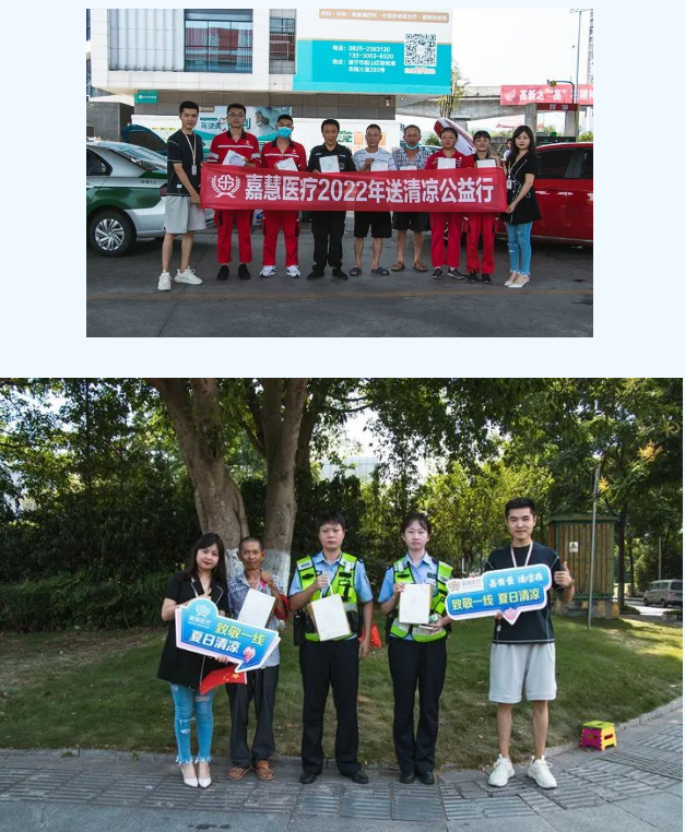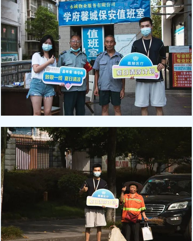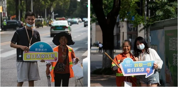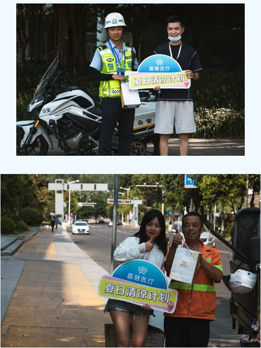 一句句关心的话语传递着温馨的祝福,一件件防暑物资表达着浓浓的关怀。本次活动共发放防暑药品、清凉饮品1000余份。嘉慧医疗希望通过小小善行为烈日下的城市工作者带来丝丝惬意、缕缕清凉,让他们感受到社会大家庭的温暖,进一步助力城市软实力提升。