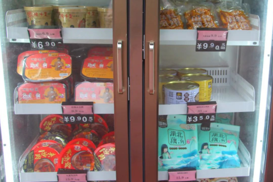 近日,记者在东城绿洲小区看到,4个2米多高的自助售货机吸引不少居民“围观”,新鲜的果蔬应有尽有,同时还有酸辣粉、火锅便当、夹沙肉、红烧肉、藕汤、鸡汤等预制菜。