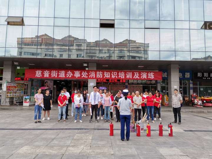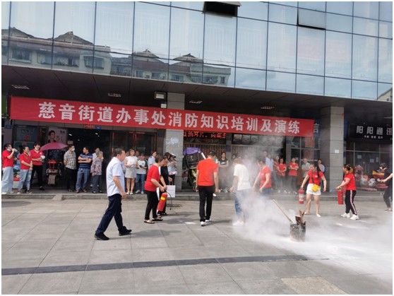 为扎实做好街道消防安全保卫工作,进一步提高干部群众应对火灾事故和突发事件的应急处置能力,5月27日下午,慈音街道开展了消防知识培训及演练。一是创新形式,精心组织。首次召集辖区中小型超市店长、安全员等共计30余人参与,以知识培训+现场演练的形式,在东汇广场佳乐超市门口,针对人员密集等特殊场所出现突发事故进行专题培训和演练。二是加强宣传,注重互动。此次培训邀请了河东消防大队朱恒同志主讲,主要介绍了超市的日常防火知识、室内火灾的逃生知识、突发事件的应急处置等知识,培训过程中,街道向辖区超市发放消防知识宣传海报20份、消防安全知识手册32份。三是实战为主,突出实效。演练现场,消防官兵再次强调了逃生自救技能和消防器材的使用及相关消防知识,6位超市员工围绕火灾扑救、正确使用灭火器、火场逃生系列项目开展了消防演练。演练人员顺利使用灭火器成功扑灭明火。