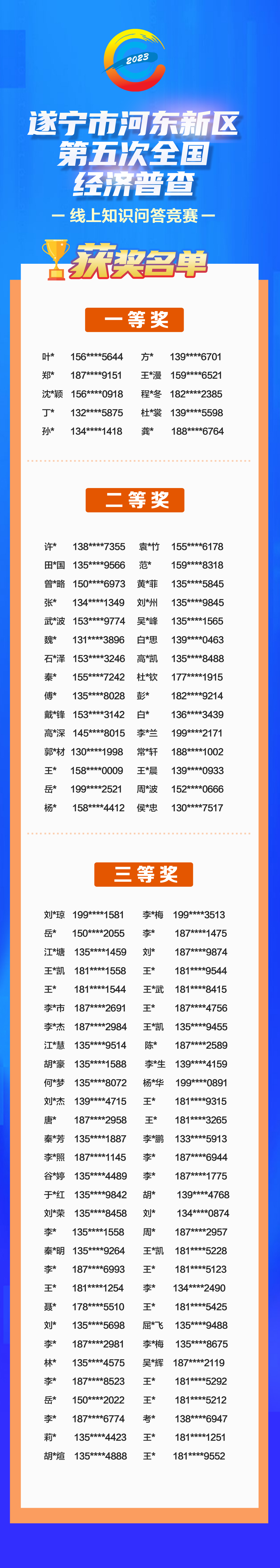 由遂宁市河东新区经普办联合新区党群工作部、发改局组织开展的知识线上竞答活动圆满结束。活动期间,广大市民朋友们踊跃参加,非常感谢大家对活动的关注和支持!根据活动规则及竞赛成绩,获奖人员已产生!