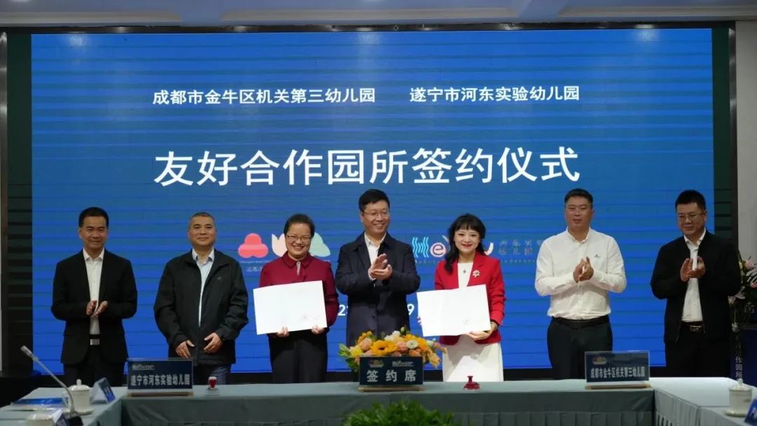 10月9日,成都市金牛区机关第三幼儿园与遂宁市河东实验幼儿园友好合作园所签约仪式举行,是我市首次与成都市开展学前教育领域结对合作,标志着成遂教育合作开启崭新篇章。遂宁市人民政府副市长张智勇出席签约仪式。