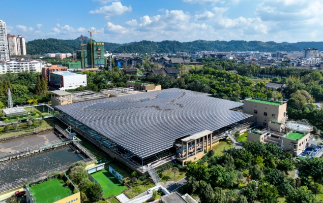 2022年8月,我市首个第五立面改造光伏发电项目在市河东新区第一污水处理厂投入运行,该项目不仅极大地缓解了生产企业用电压力,同时还进一步提升城市颜值与品质,实现环保、经济、社会效益三赢。