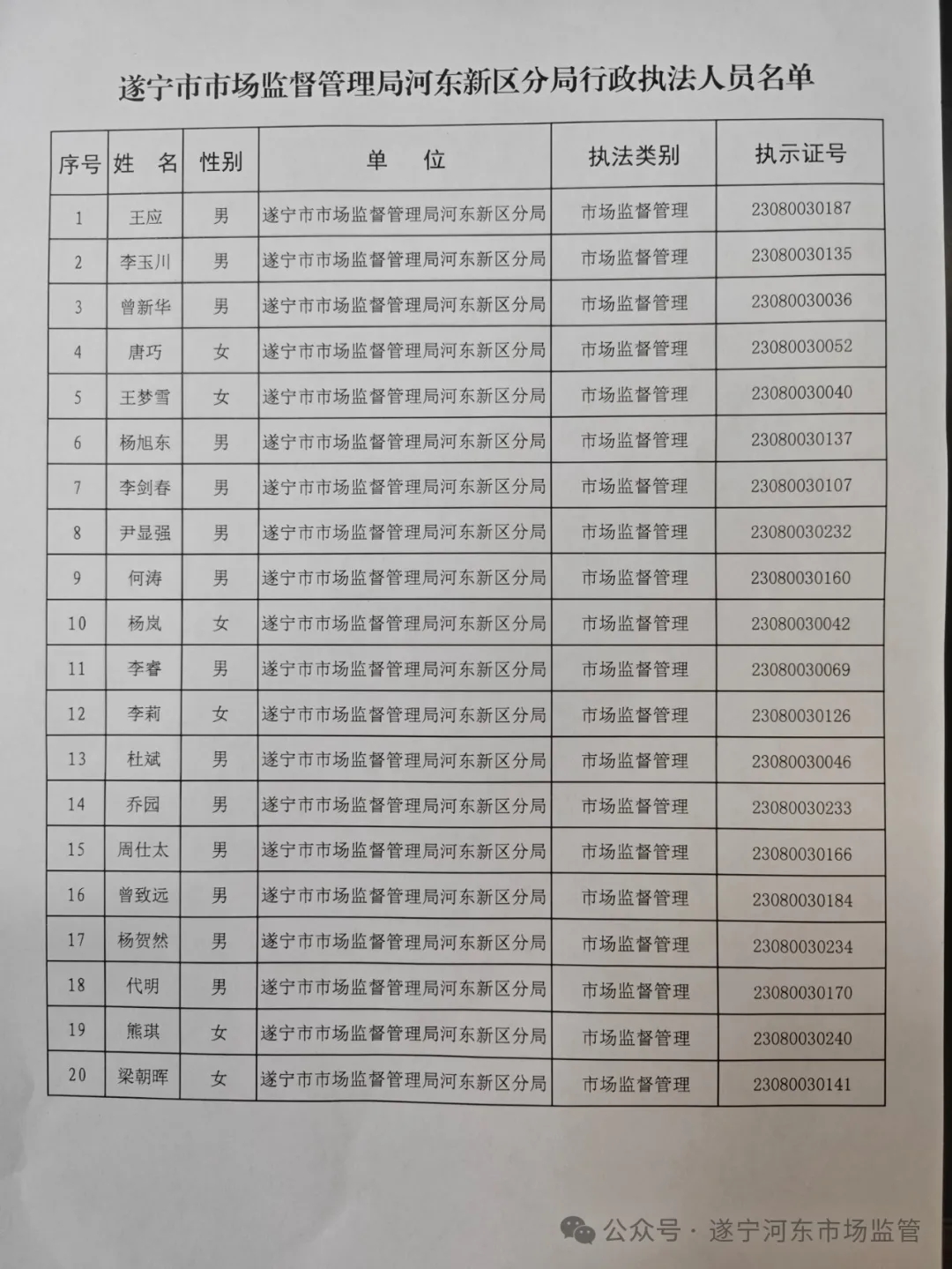 遂宁市市场监督管理局河东新区行政执法人员名单