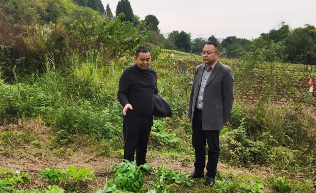 ▲查看苟桥社区撂荒地复耕情况做好教育“监督者”助力检查“常态化”