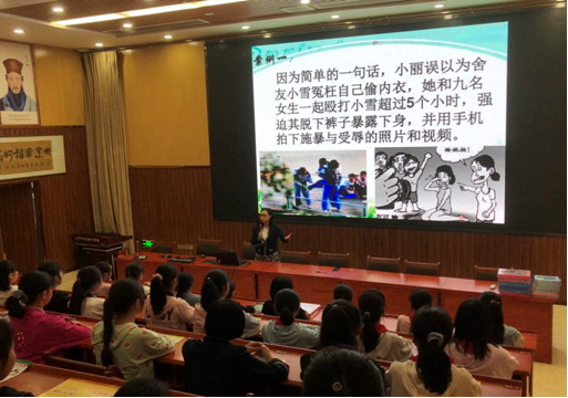 活动中,干警结合一些发生在学校周边、学生身边的鲜活案例,采取以案讲法、以案学法的方式,为学生讲解了什么是校园暴力、校园暴力的危害,在日常学习生活中如何培养自己的法律意识。其次,还为同学们讲解了如何预防犯罪、打击犯罪以及自我防范和保障生命安全等方面的一些方法和策略。同时向同学们提出,不仅要学好课本知识,也要充分利用好法治课堂、互联网等工具,学习好法律知识,从小养成遇事找法、遇事懂法、用法办事的能力。