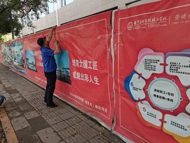 创新推行“排查-整改-长效”三位一体管理模式,系统开展施工围挡提档升级。重点整治围挡广告乱贴、标语残缺、结构隐患等突出问题,建立“工地档案”动态管理机制。督促施工单位实施专业化修复工程,同步配齐安全防护设施,健全日常维护制度,确保围挡设施达到“安全稳固、整洁美观、规范统一”的标准化要求。