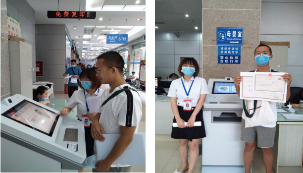 “只需要把身份证放在机器读卡区,屏幕上扫下脸,就能自助打印营业执照,跟银行自助取款一样方便!”四川金童子科技有限公司李先生激动地说。