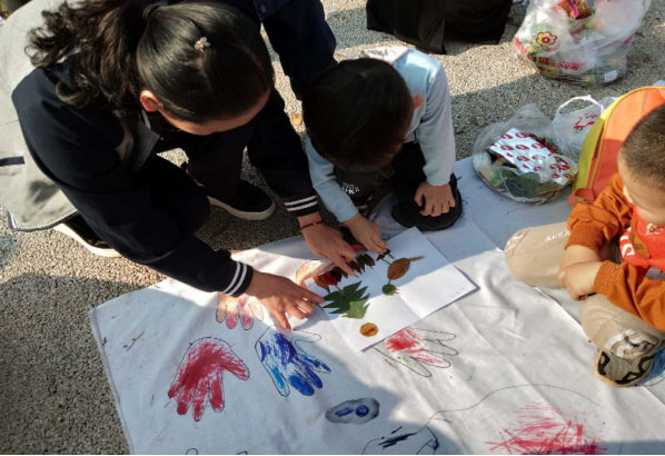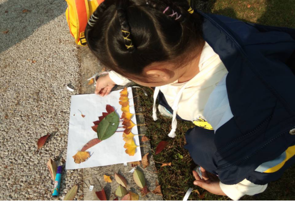 为了让孩子们在自然、安全、快乐的气氛中创作他们的作品,科教园设置安排了3名工作人员负责活动现场的安全,2名工作人员负责指导孩子们绘制作品。孩子们用一双双巧手将落下的树叶拼接出小鸡、长颈鹿、小鱼、蝴蝶、树木、花朵等动植物,不多久,一幅幅生动形象的作品跃然纸上。在孩子们创作的过程中,负责工作的叔叔阿姨们耐心的向他们讲解大自然的知识,让他们了解自然环境和我们人类之间的联系从而意识到自然的重要性,激发孩子们的热爱自然、保护自然的深刻情感。