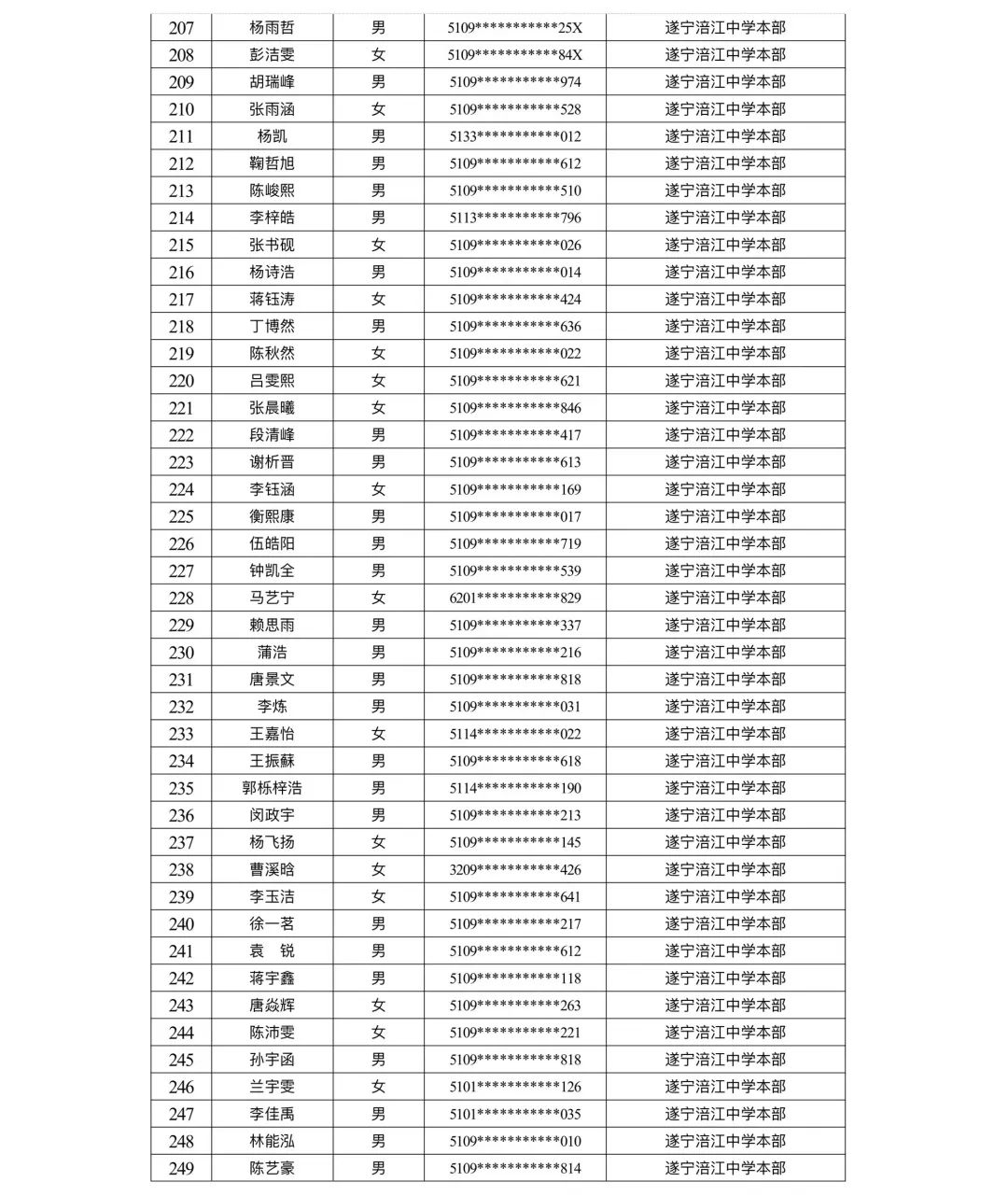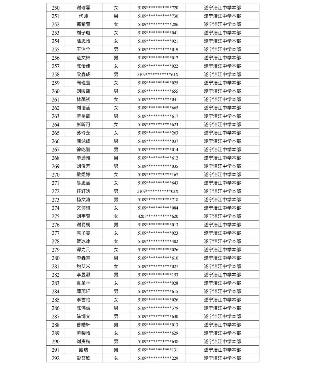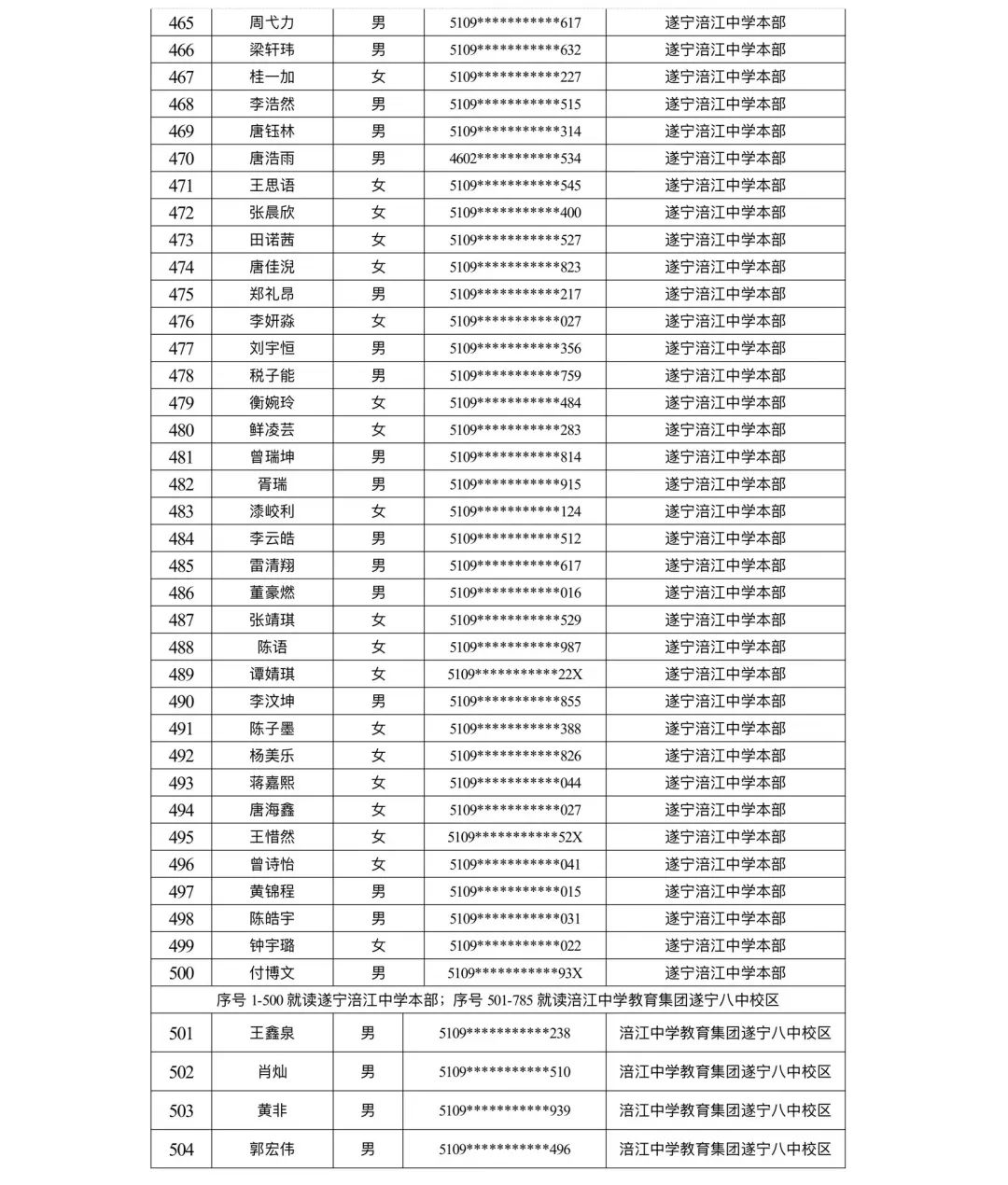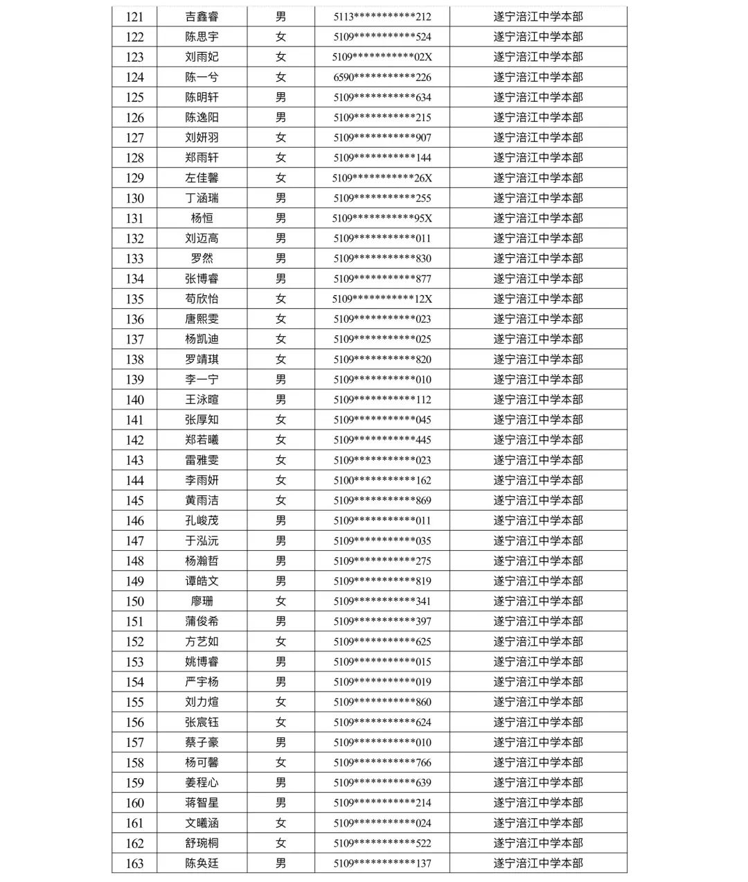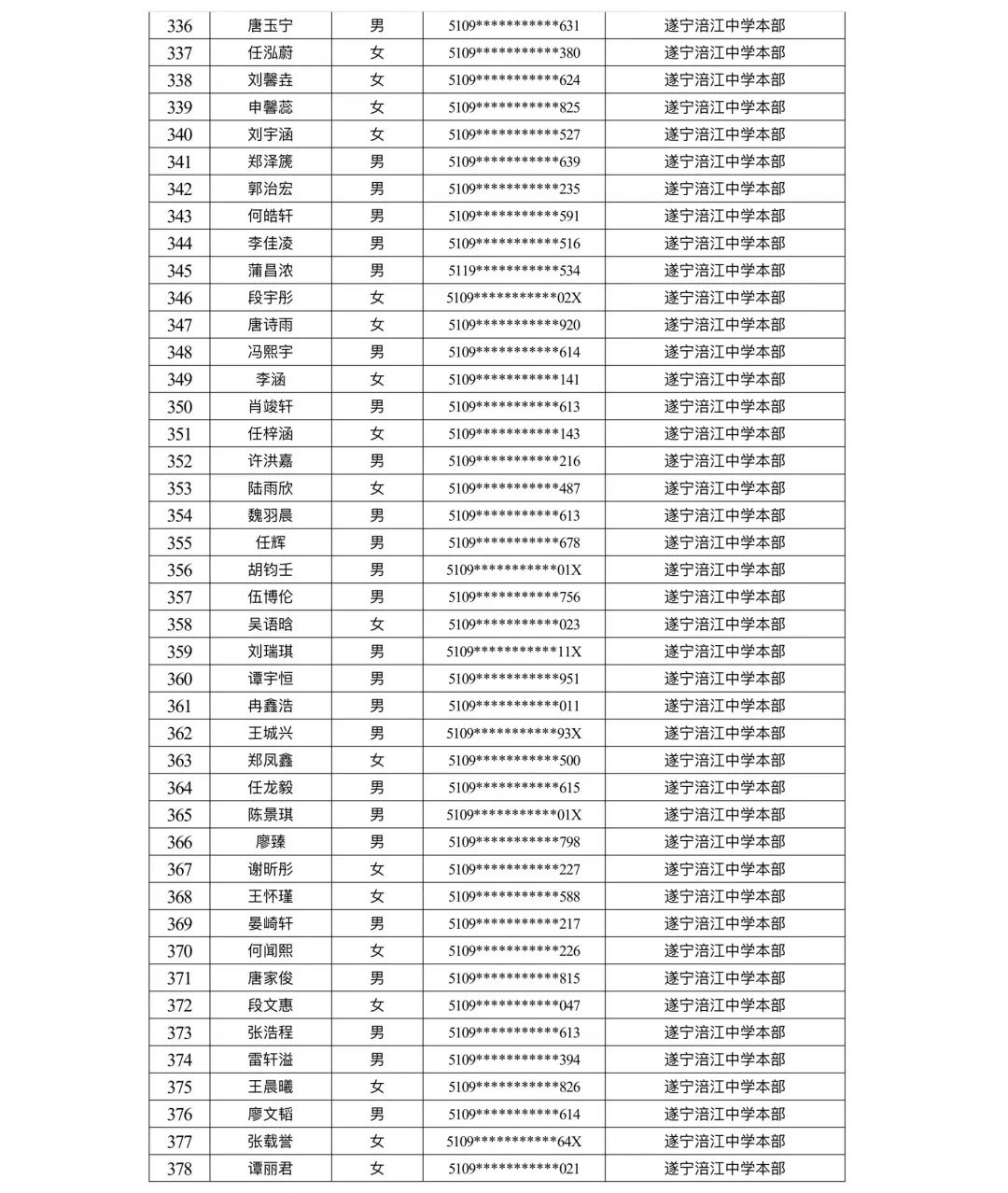 遂宁涪江中学教育集团2023年秋季学期河东片区初一新生摇号结果