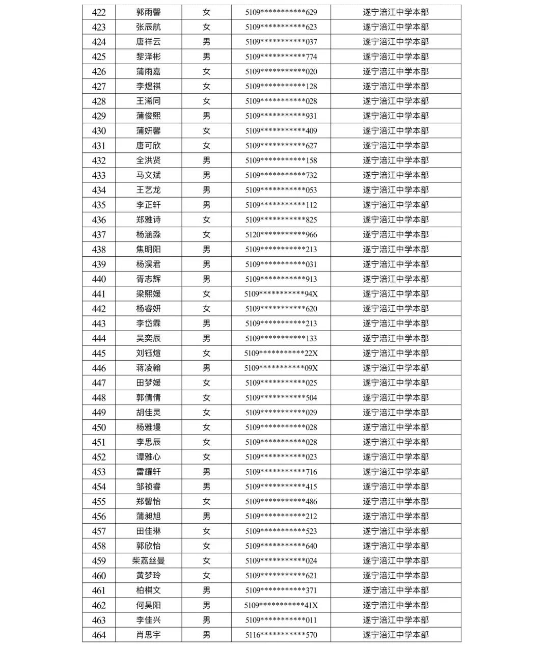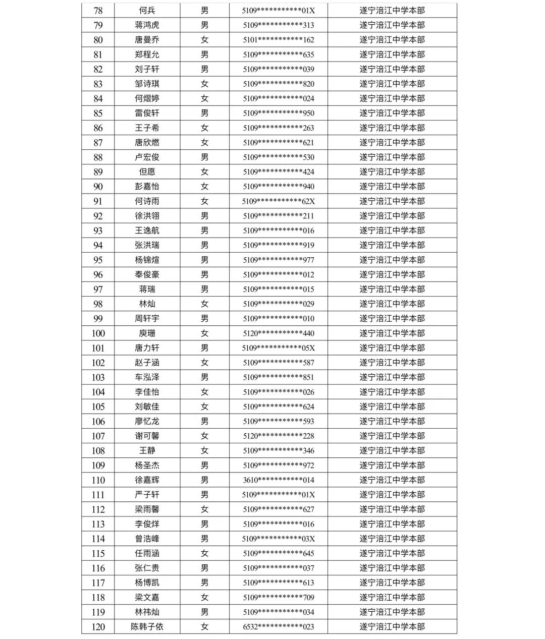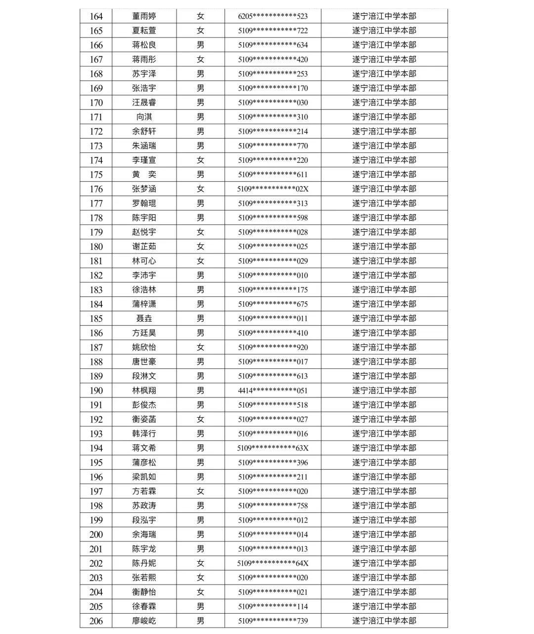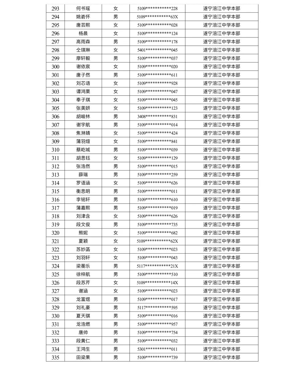 遂宁涪江中学教育集团2023年秋季学期河东片区初一新生摇号结果
