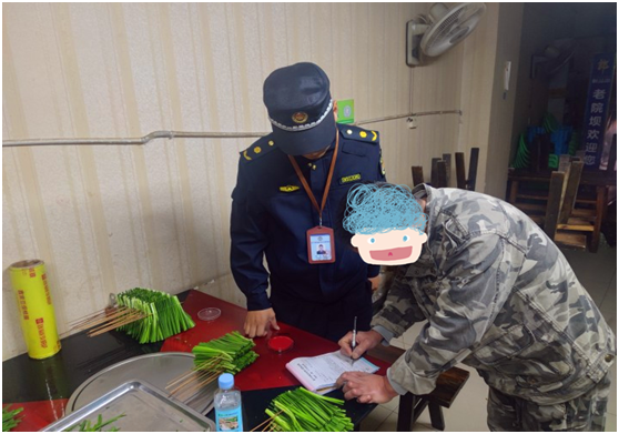 但因烧烤店油烟净化设备长期使用未及时进行清洗,导致管道油污增多,影响油烟规范排放。对此,执法人员对烧烤店责任人进行了相关法律法规讲解、宣传,责令商户签署违章行为登记表,要求其对油烟净化设备进行定期清洗和维修,确保油烟规范排放。
