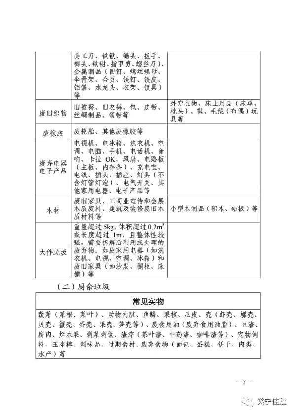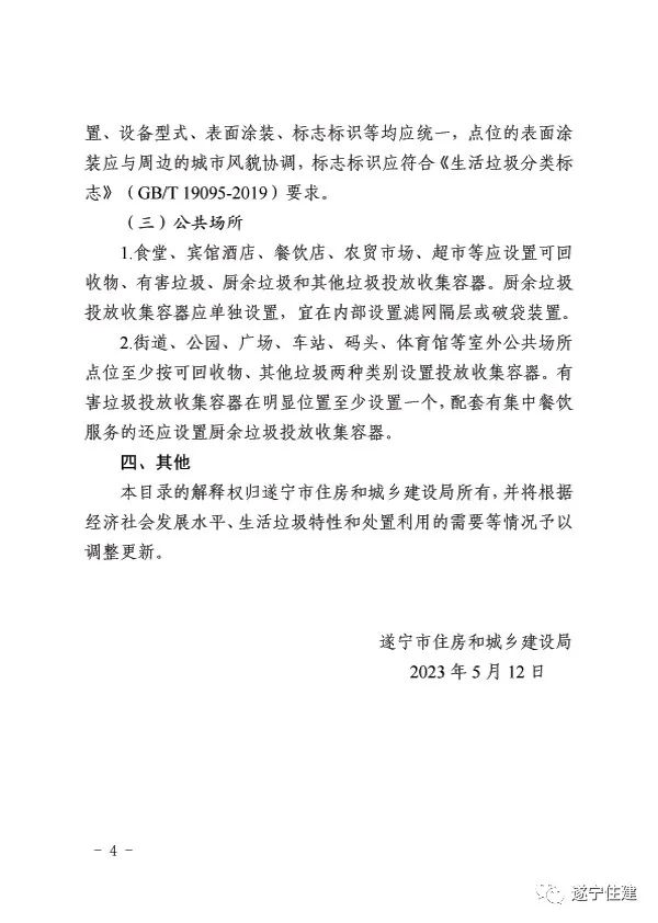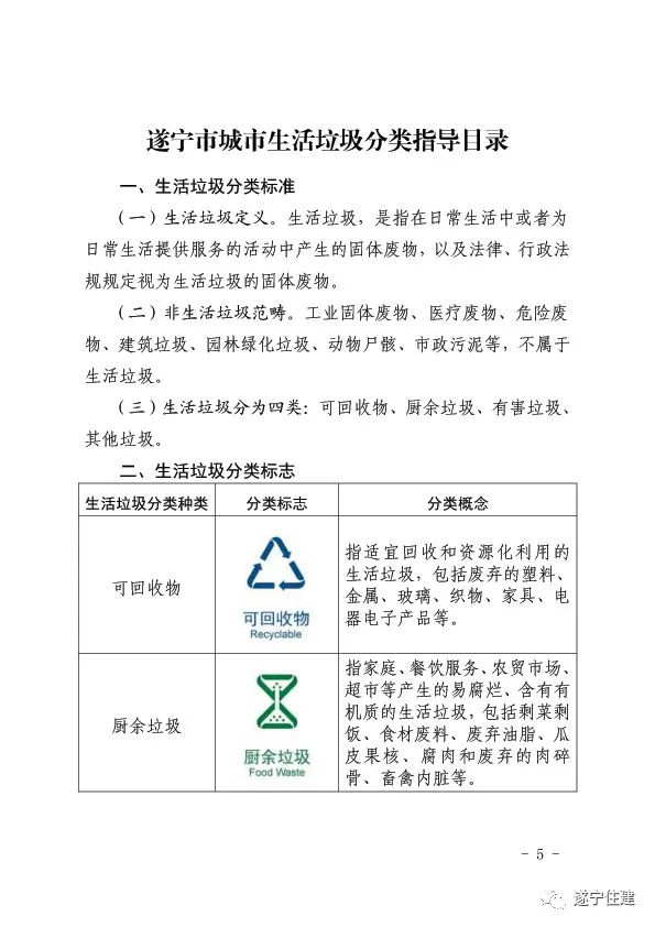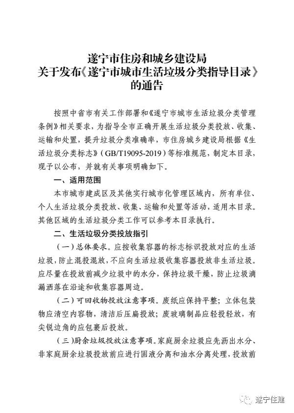 关于发布《遂宁市城市生活垃圾分类指导目录》的通告