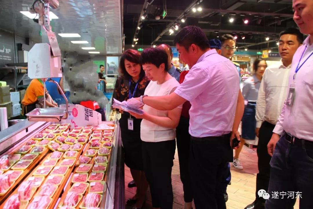 在万达广场,刘娜一行首先到负一楼(芙思特超市),详细询问了超市安全工作落实情况,查看了消防器材配备使用情况,重点检查了生猪、半熟食等产品,对超市落实动物检疫合格证明、进货索证索票、进销货台账制度情况,以及食品外包装标识是否齐全清晰、是否存在销售过期变质食品等情况进行了检查。随后,到万达写字楼进行节前安全生产工作落实情况检查,在酒店公司,查看了房间门窗、安全通道、电梯的运行状况,重点了解了酒店公司应对突发事故采取的防范措施。